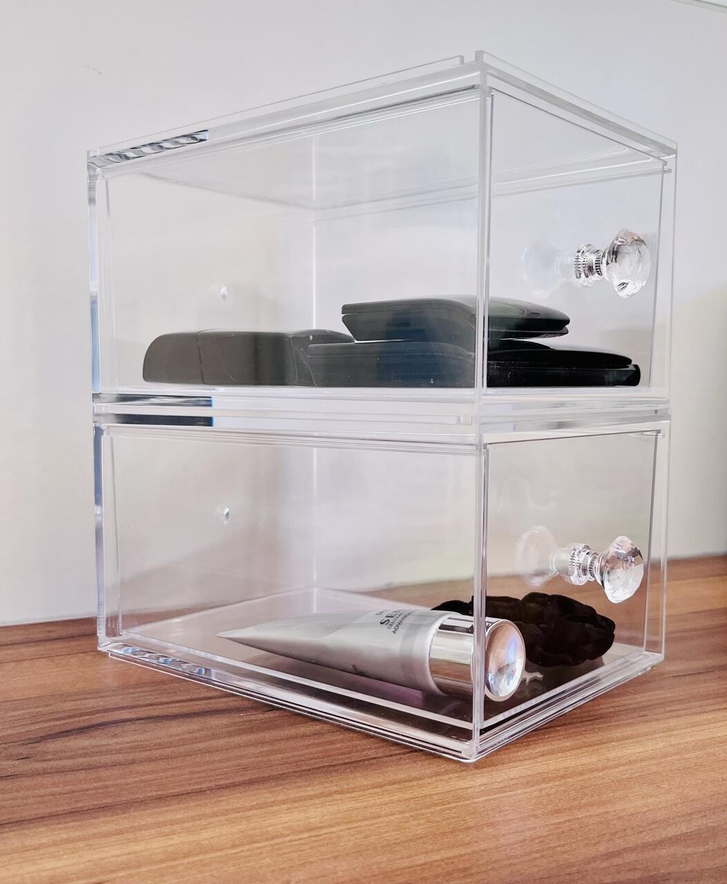 Väike käepidemega sahtliboks, milles on hea hoida kosmeetikatarbeid, ilutooteid ja muid väikseid esemeid. Sahtlibokse saab üksteise peale virnastada.