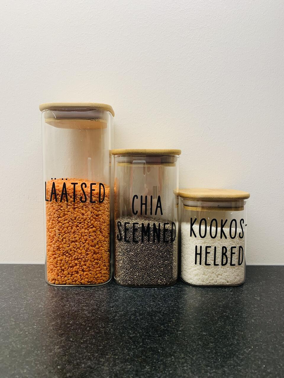 Personaalselt Sulle valmistatud sildid on pilkupüüdvad ja aitavad köögikapis korda hoida. Sildid on valmistatud vastupidavast vinüülist ning on vee- ja pritsmekindlad.
