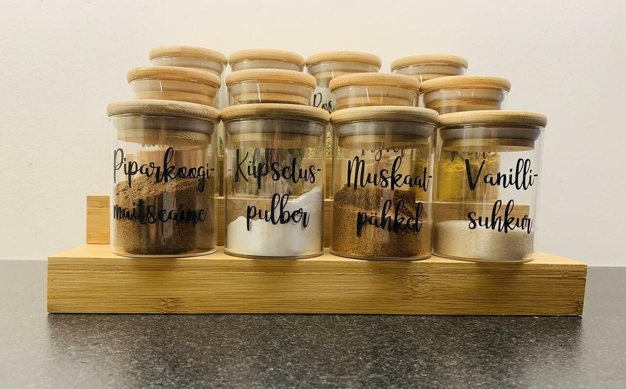 Personaalselt Sulle valmistatud sildid on pilkupüüdvad ja aitavad köögikapis korda hoida. Sildid on valmistatud vastupidavast vinüülist ning on vee- ja pritsmekindlad.